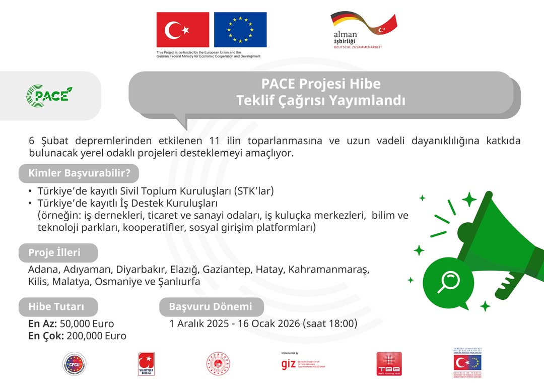 PACE Projesi Hibe Teklif Çağrısı Yayınlandı