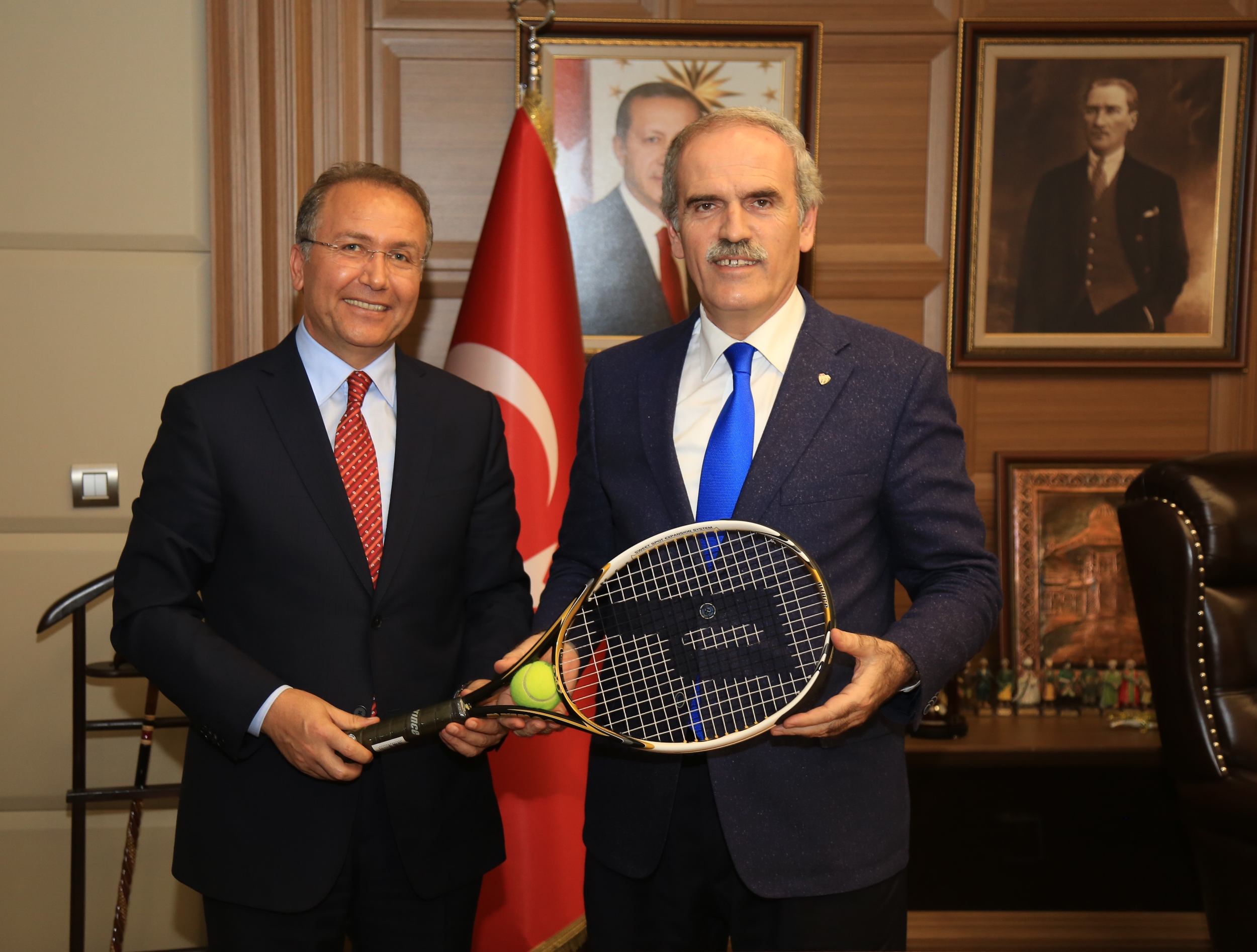 Büyükşehir Belediye Başkanı Recep Altepe, Bursa’nın spor kenti kimliğini de öne çıkarma hedefiyle sporun ve sporcuların desteklendiğini ifade ederek, kentin adının sportif başarılarla dünyaya duyurulmasının önemli olduğunu söyledi.Büyükşehir Belediye Başkanı Recep Altepe, Bursa Gençlik Hizmetleri ve Spor İl Müdürü Süleyman Şahin ve Tenis Federasyonu Başkanı Cengiz Durmuş ile Büyükşehir Belediyesi yeni hizmet binasında bir araya geldi. Bursa’da sporun önemine işaret eden Başkan Altepe, “Bursa’nın spor kenti kimliğini de öne çıkarmak üzere, sporu ve sporcularımızı destekliyor, kentimizin spor altyapısını güçlendirmeye ve tesisleşmeye önem veriyoruz. Bursa, sporun tüm branşlarıyla da anılsın isteriz. Bursa’da tenis branşı da gün geçtikçe daha değer kazanıyor. Spora desteğe devam ediyoruz” diye konuştu.Başkan Altepe, Hüdavendigar Kent Parkı’ndaki tenis kortlarının kentin teniste yükselmesini teşvik ettiğini de dile getirdi.Altepe’ye spora destek teşekkürüBursa’da spora ve sporcuya büyük destek veren Başkan Altepe’ye teşekkür eden Durmuş ve Şahin, kentte teniste de altyapının yükseldiğini ve bu noktada tesisleşmenin önem kazandığını kaydetti. Bursa’da sporun tesisleşmesine önem veren Başkan Altepe’nin gençleri spora teşvik ettiğini anlatan Durmuş, Bursa’nın teniste önemli şehirlerden biri olduğunu ifade etti. Gençlik Hizmetleri ve Spor İl Müdürü Süleyman Şahin de Bursa’nın sporda öncü olduğunu, Büyükşehir Belediye Başkanı Recep Altepe’nin destekleri ve Büyükşehir Belediyesi’nin hizmetleriyle kentin sporda da öncü olduğunu söyledi. Bursa Büyükşehir Belediyespor Kulübü Başkan Yardımcısı İlhan Satık’ın da katıldığı ziyarette, Maria Sharapova ve Roger Federer gibi dünyaca ünlü tenisçilerin katılacağı bir turnuvanın da 2017 yılında Bursa’da planlanmasına yönelik fikir alışverişinde bulunuldu.